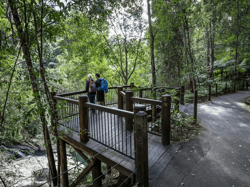 At the very end of Currumbin Creek Road, youβll find the Cougal Cascades walking track. This is a short, pram-friendly path through beautiful rainforest that leads to: