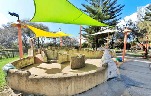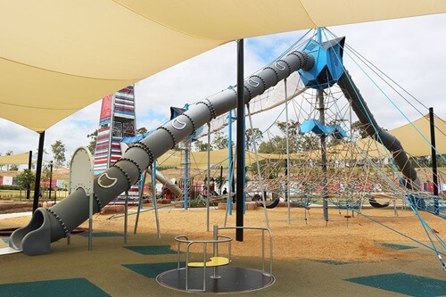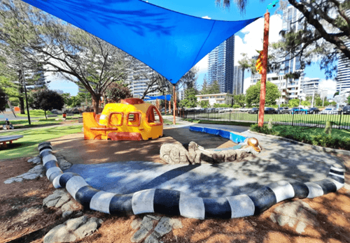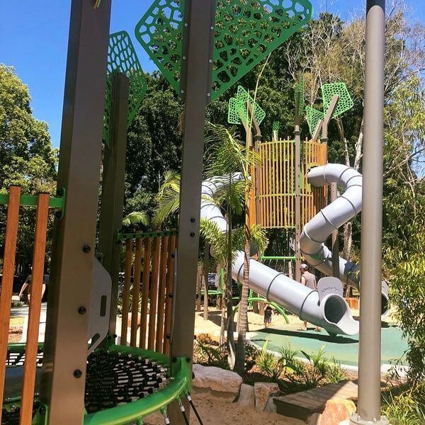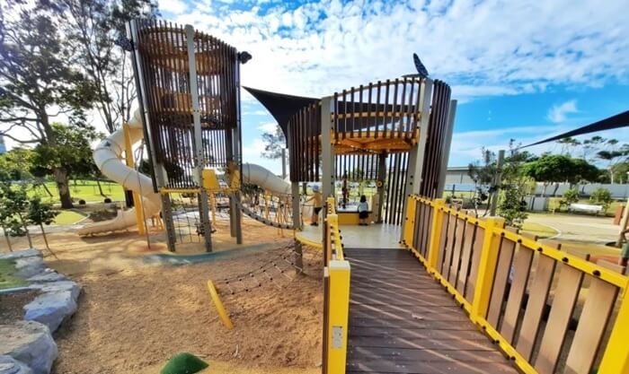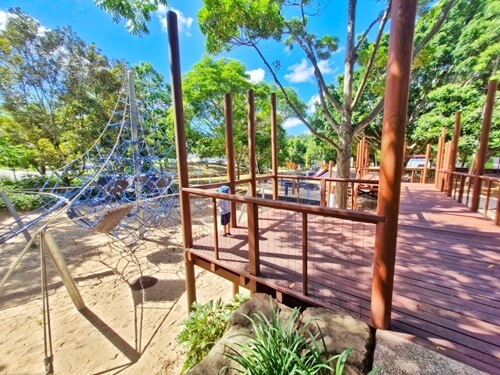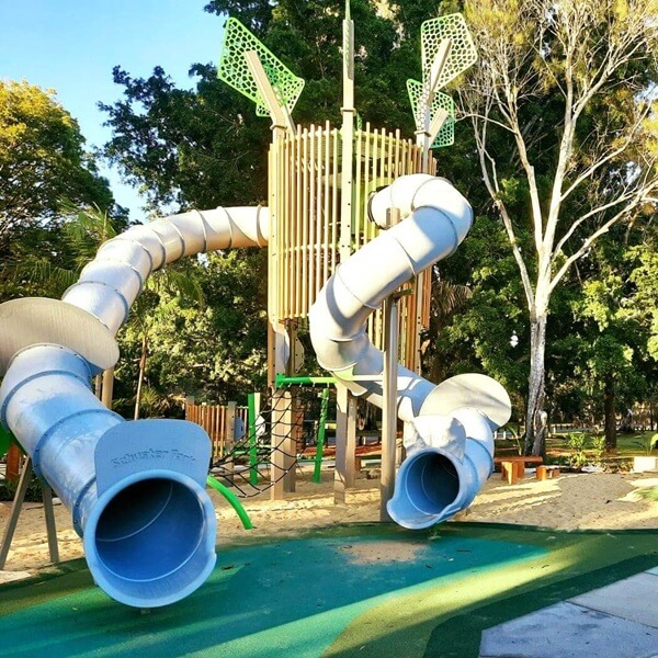 This Brisbane playground also makes for a great summer stop, with a water play and splash zone. Children can play in the shallow water, run in and out of the fountains, relax in the man-made rock pools and more. There are multiple shade sails covering most of the water play area.