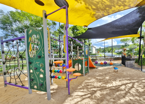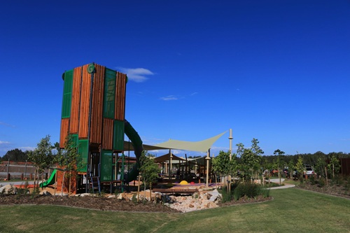 Check out the Sunshine Park playground, with its massive tower standing at eight metres tall with three levels, it invites children to come and play. Inspired by the towering trees and creeping vines of a rainforest, the structure is both impressive and engaging.