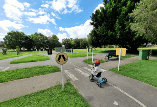 There’s a mini traffic track, adjacent to the playground, can be utilised to develop road safety awareness and riding skills.
