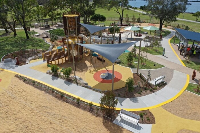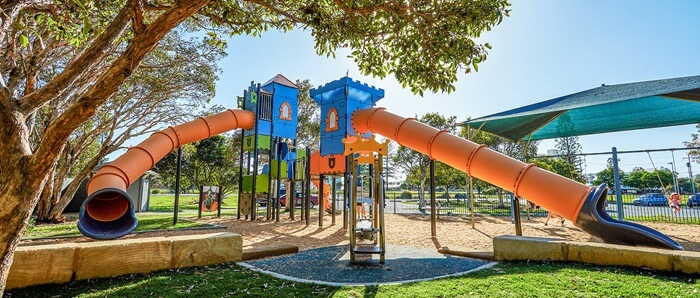 You’ll find Beth Boyd Park at the corner of John Street and Mooroondu Road in Thorneside. It’s about a 25-minute drive from Redland Bay. This toddler-friendly playground is a little slice of paradise where play meets the bay – don’t forget a change of clothes if your child loves water play!
