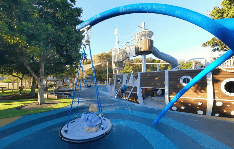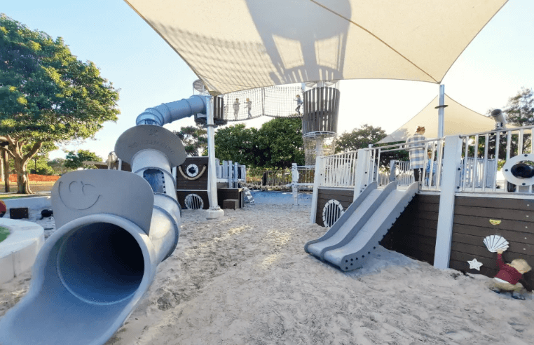 Beth Boyd Park brings a seaside pirate adventure to toddler play, complete with a shipwreck fort and splash zone. Set beside the tranquil bay at Thorneside, this park recently had a major makeover. Today, it’s a must-visit for families with young kids.